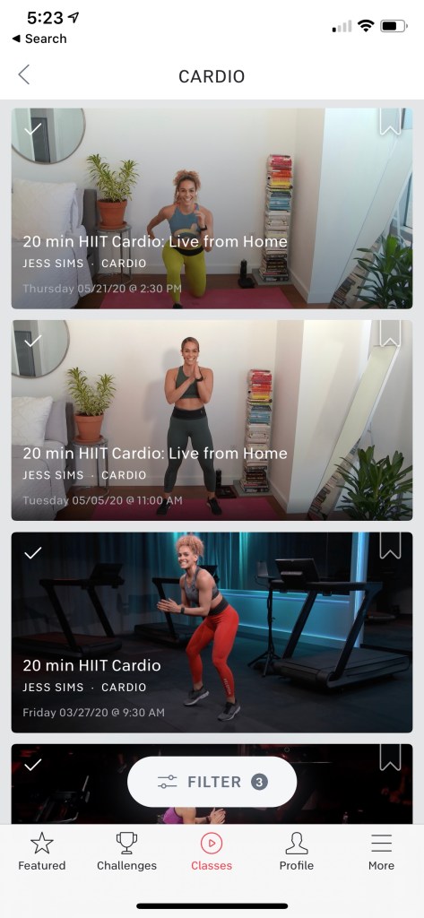 Jess Sims has emerged as my favorite instructor of the group. Also a former DI athlete (basketball), she brings a great energy and team-first focus to her workouts. Sometimes you even get to meet her dog in the live from home sessions! In my opinion, she also does the best job constructing balanced, full body workouts.