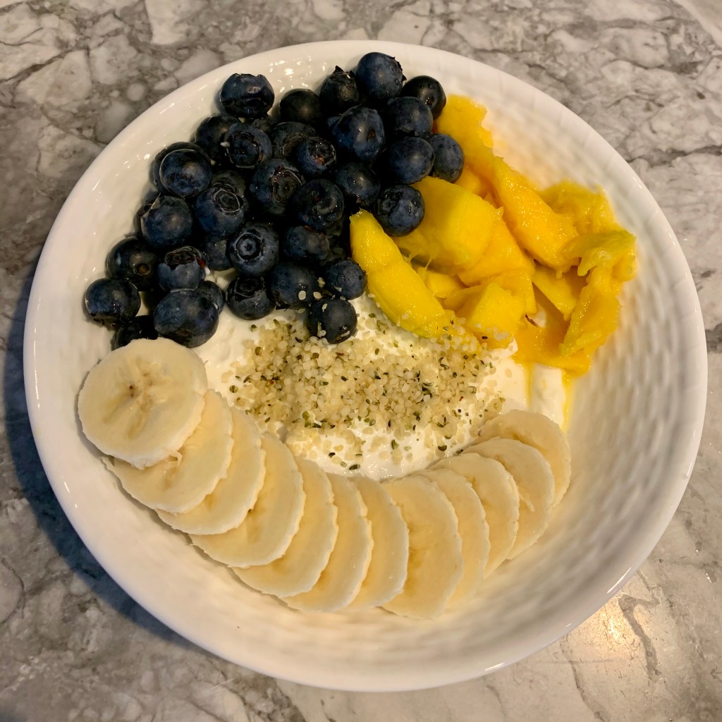 Blueberry-mango is one of my favorite smoothie combinations. This yoghurt bowl is a deconstructed version of the delicious drink. It’s also quick to put together and highly portable.