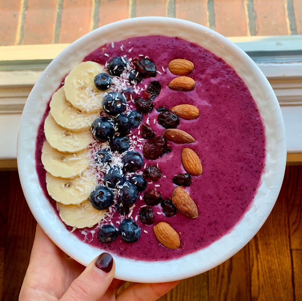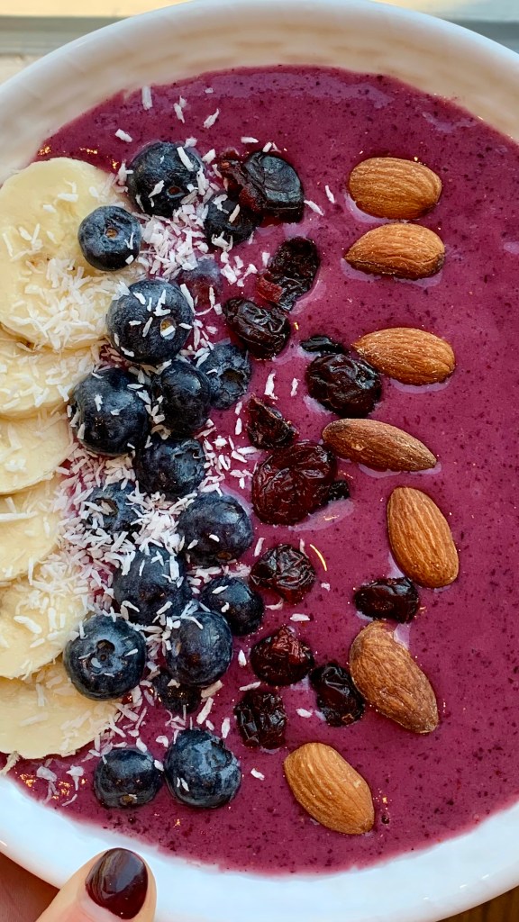 Blend the blendables and top with toppings. What a great recipe to throw together using the leftover cranberries from a big holiday dinner!